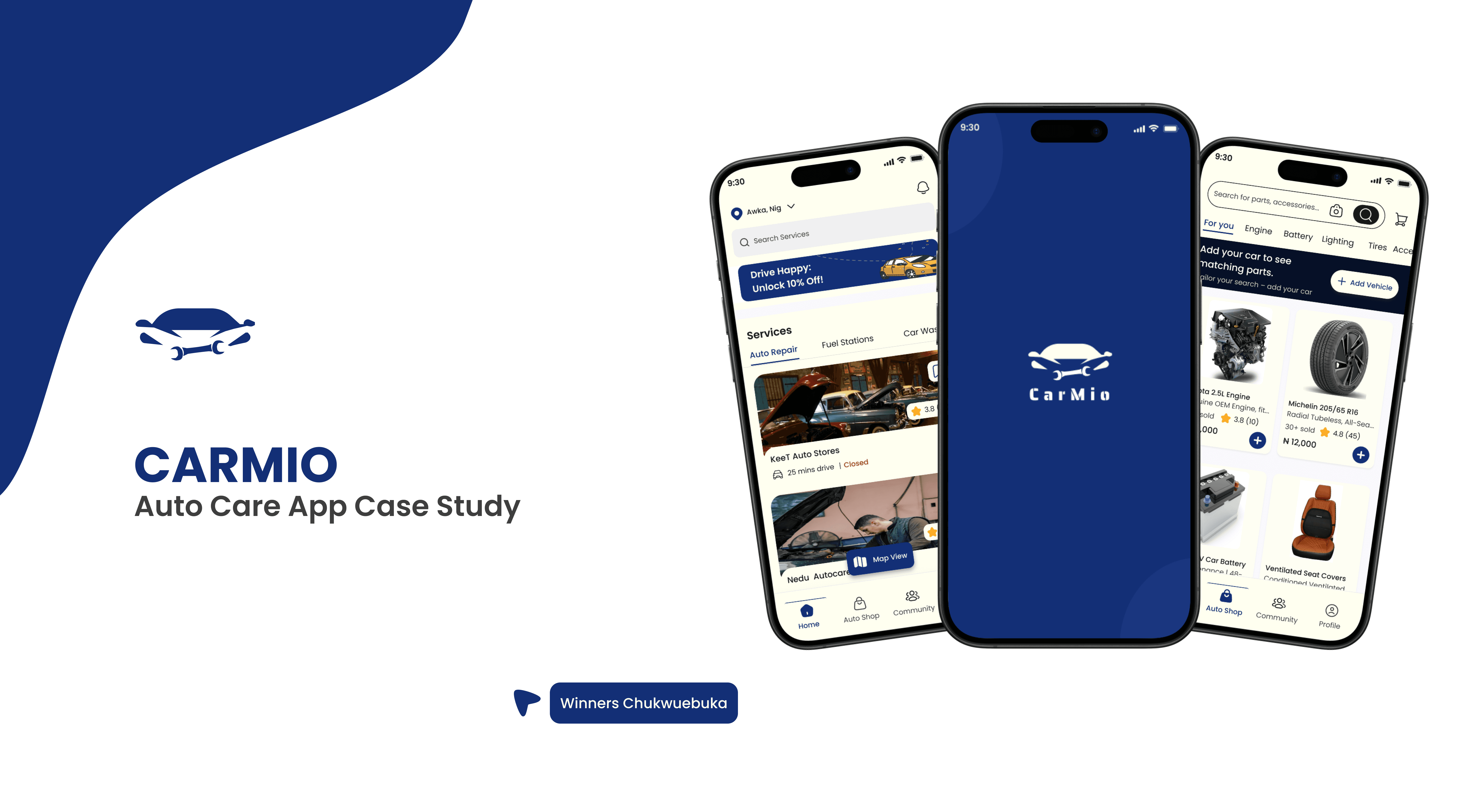 CarMio is an all in one auto care app that lets users book services, shop for parts, find nearby stations, and connect with a driver community all from one platform